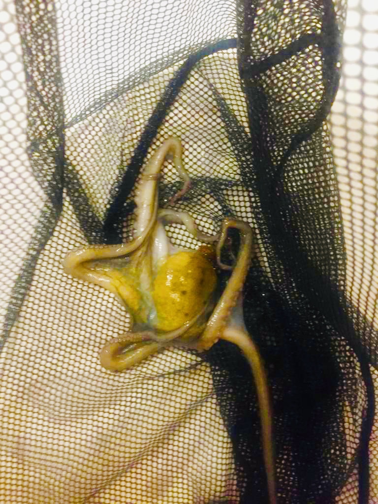 The result proves I am not only a good free diver but also have good IQ. The octopus was in my net and I am ready to bring it home!!